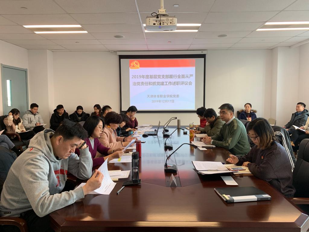 2019年12月17日上午,体职院在二楼会议室召开2019年度基层党支部履行全面从严治党责任和抓党建工作述职评议会👈🏿,学院领导班子成员、各基层党支部书记、系部负责人及部分党员代表参加了会议🪸。