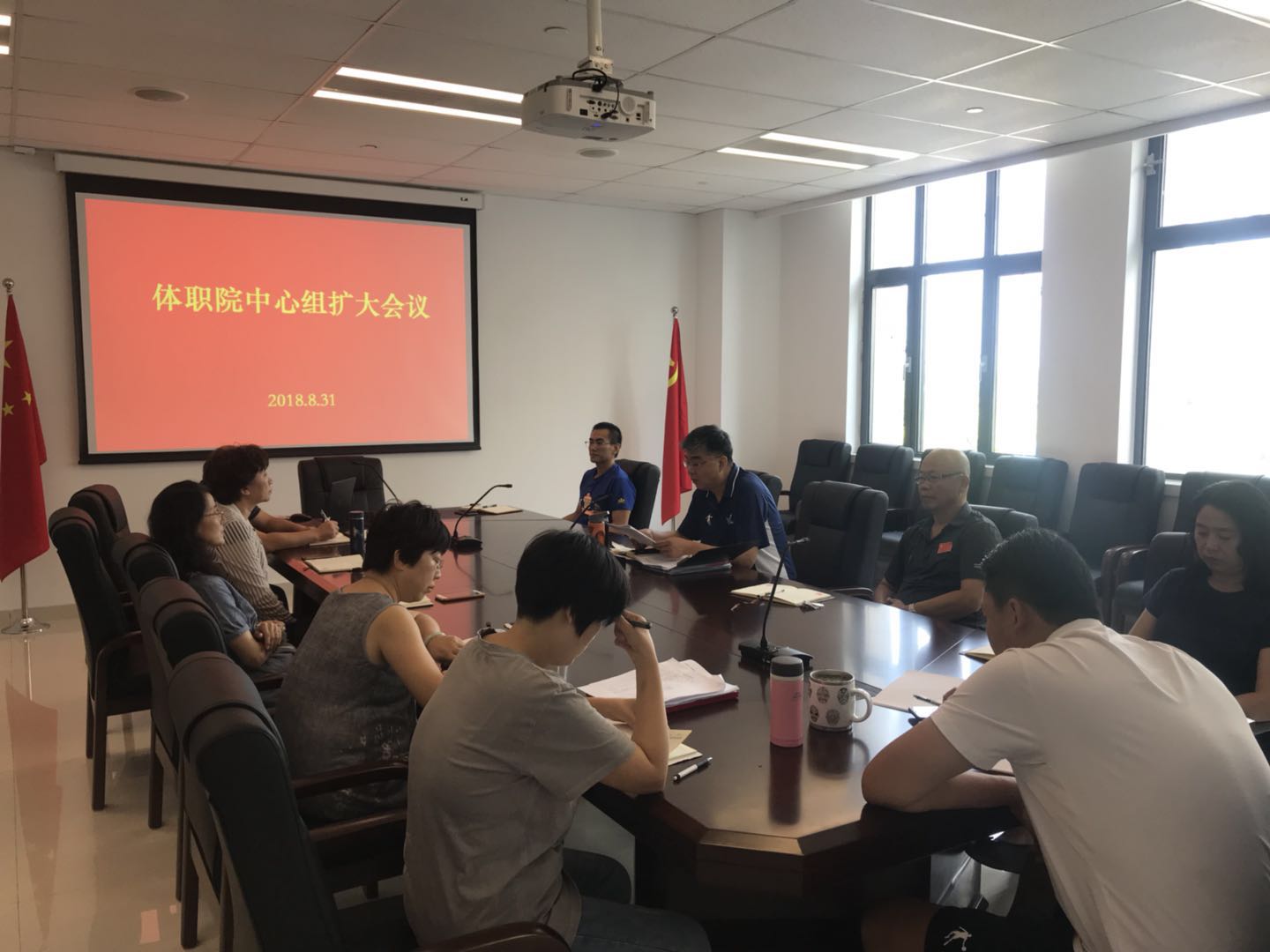 2018年8月31日,体职院在二楼会议室召开中心组扩大会议🪚,学院党委书记王伟出席并主持🤵🏿,学院各处室、系部负责人🌳,各党支部书记参加。