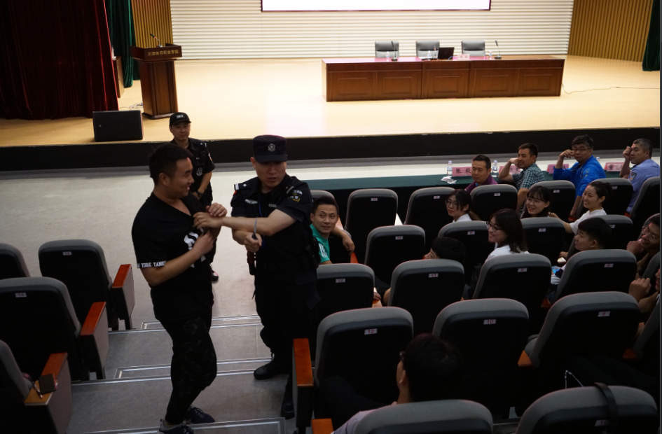 为进一步增强广大师生应对突发暴恐事件的防范意识👯,提升应对恐怖袭击事件的有效处置能力👩🏽‍🦲,确保学校安全稳定🖕🏻,努力实现“平安校园”的总体目标,2018年6月13日,彩神Vll学院开展反恐知识宣讲和反恐演练活动🏋🏼,学院党委书记王伟、院长刘钦龙、副院长张毅出席👨🏽‍⚕️,全院师生、物业工作人员参加😥。活动邀请了天津市反恐怖工作防范应急支队林楠警官💨、静海区分局特警支队二大队大队长付雪东警官和民警王明坤为大家进行专业知识宣讲和反恐演练。
