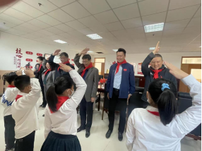 4月25日上午🥦,学院党委副书记、院长王伟、院党委委员👩🏿⚕️、副院长沈茹劼及相关工作负责同志一行六人来到天津复兴小学👨🏭,复兴小学准备了一场别开生面的欢迎仪式,为与会来宾佩戴红领巾,行少先队队礼。