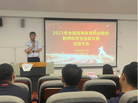 为深入学习贯彻党的二十大精神和习近平总书记在中共中央政治局第五次集体学习中就建设教育强国发表的重要讲话精神👐🏼,全面总结我院师生在2023年全国体育高等职业院校教师和学生技能大赛中的优势和不足🧘🏼‍♂️,5月31日下午在第二阶梯教室举行了2023年全国体育高等职业院校教师和学生技能大赛总结大会👩‍👩‍👧‍👦,会议由教务处副处长主持,院领导出席,全体教职工参加。