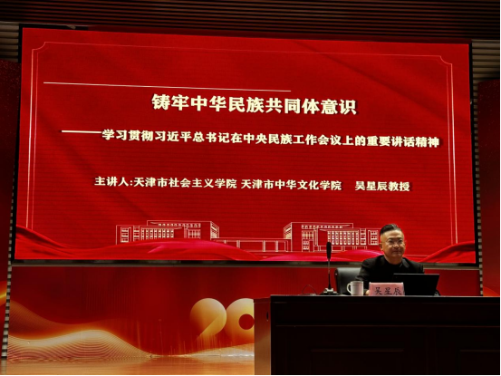 为深入学习贯彻党的二十届三中全会精神,深刻领会习近平总书记关于加强和改进民族工作的重要思想📘,贯彻落实习近平总书记关于铸牢中华民族共同体意识的重要论述,引导广大师生牢固树立中华民族共同体理念,促进各民族交往交流交融𓀕,建设中华民族共有精神家园🤾🏿♀️。11月13日下午,我院邀请天津市社会主义学院 天津市中华文化学院吴星辰教授作铸牢中华民族共同体意识专题培训♣︎👨🏽🚀。学院领导班子👩🏿💻、教职工代表👯♀️🌔、少数民族学生及2024级学生代表参加专题培训。